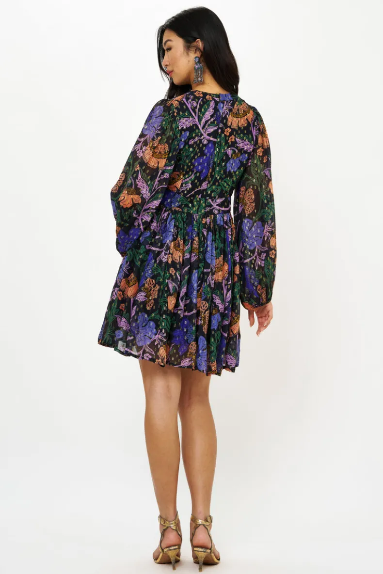 Float and sparkle through the season’s celebrations with this piece of airy georgette, accented with gold-dot lurex. Balloon sleeves stretch at the cuffs for a graceful glide, while the lined body exudes elegance and ease. Discreet back zipper, charming keyhole neckline, and crewneck collar add allure.