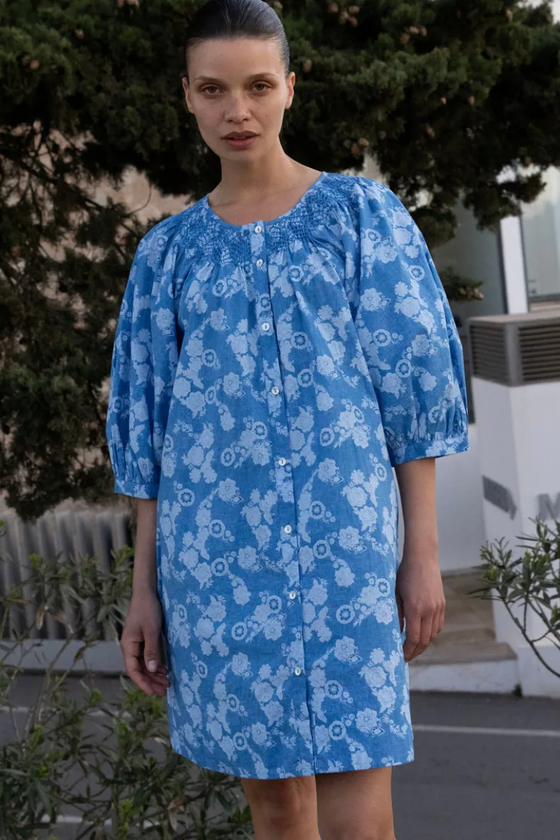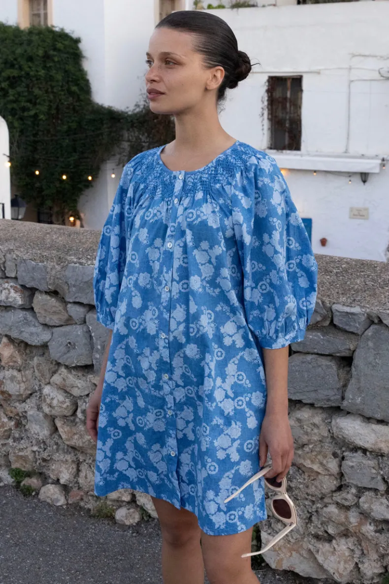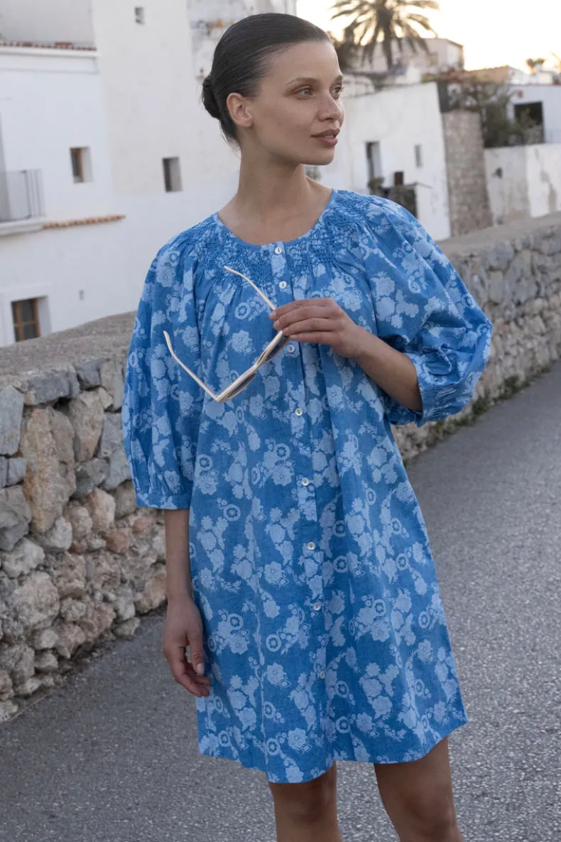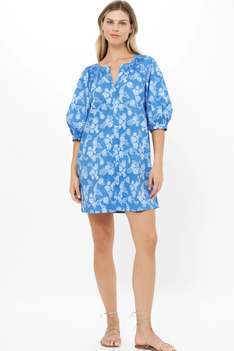 Hand embroidered smocking around the neckline and tailored cuffs with Mother of Pearl button closures make this an upgrade to your everyday style,