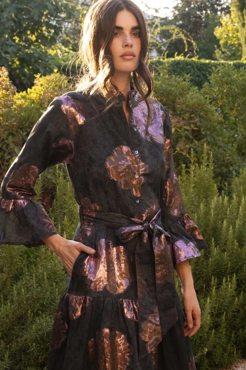 - Lightweight metallic floral jacquard