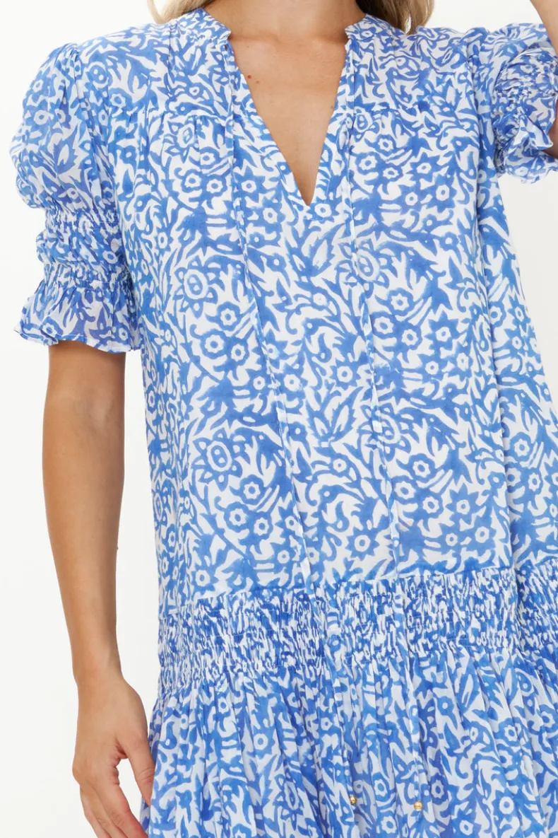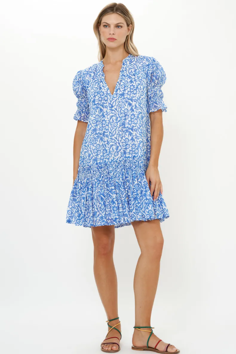 The dress you buy once and pack time and time again! Balloon smocked half-sleeve enhance the silhouette whilst the smocked drop waist hemline exudes a relaxed, vacation-ready charm.