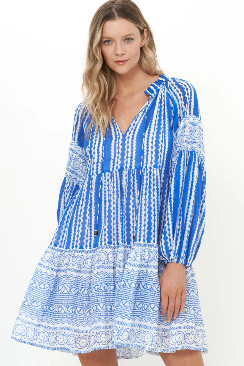 Dive into the Balloon Sleeve Short, designed for leisurely beach days. Wavy lines and damask floral motifs meet in a celebration of sun and sea. Revel in this soft to the touch seaside style and embrace paradise in Ziggy Blue.