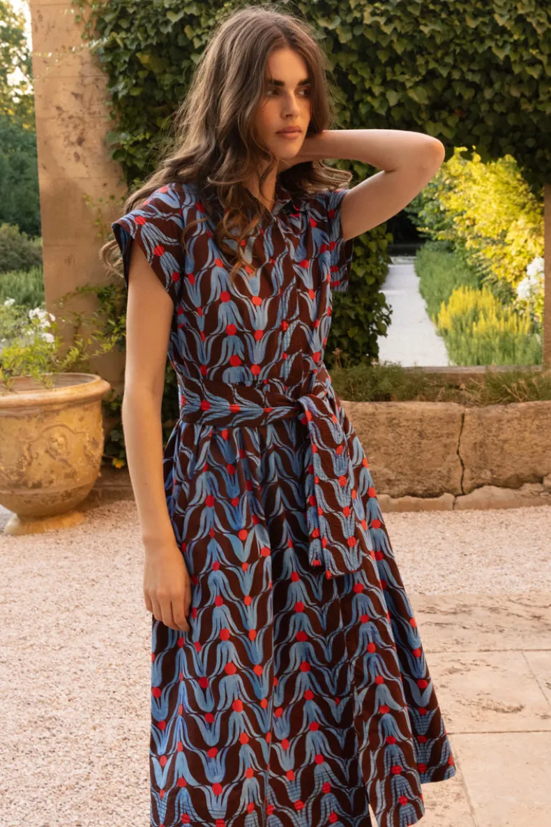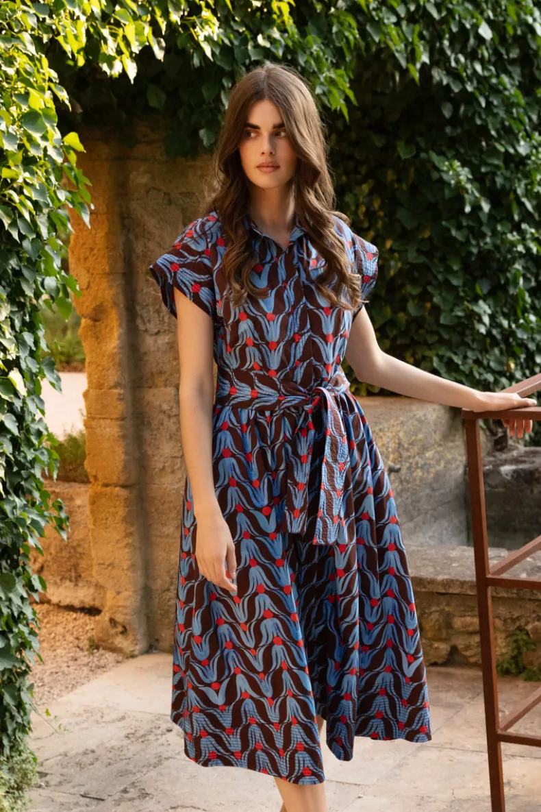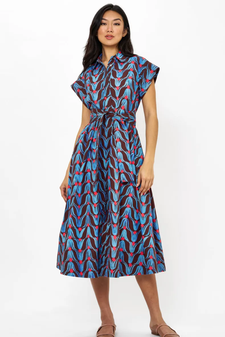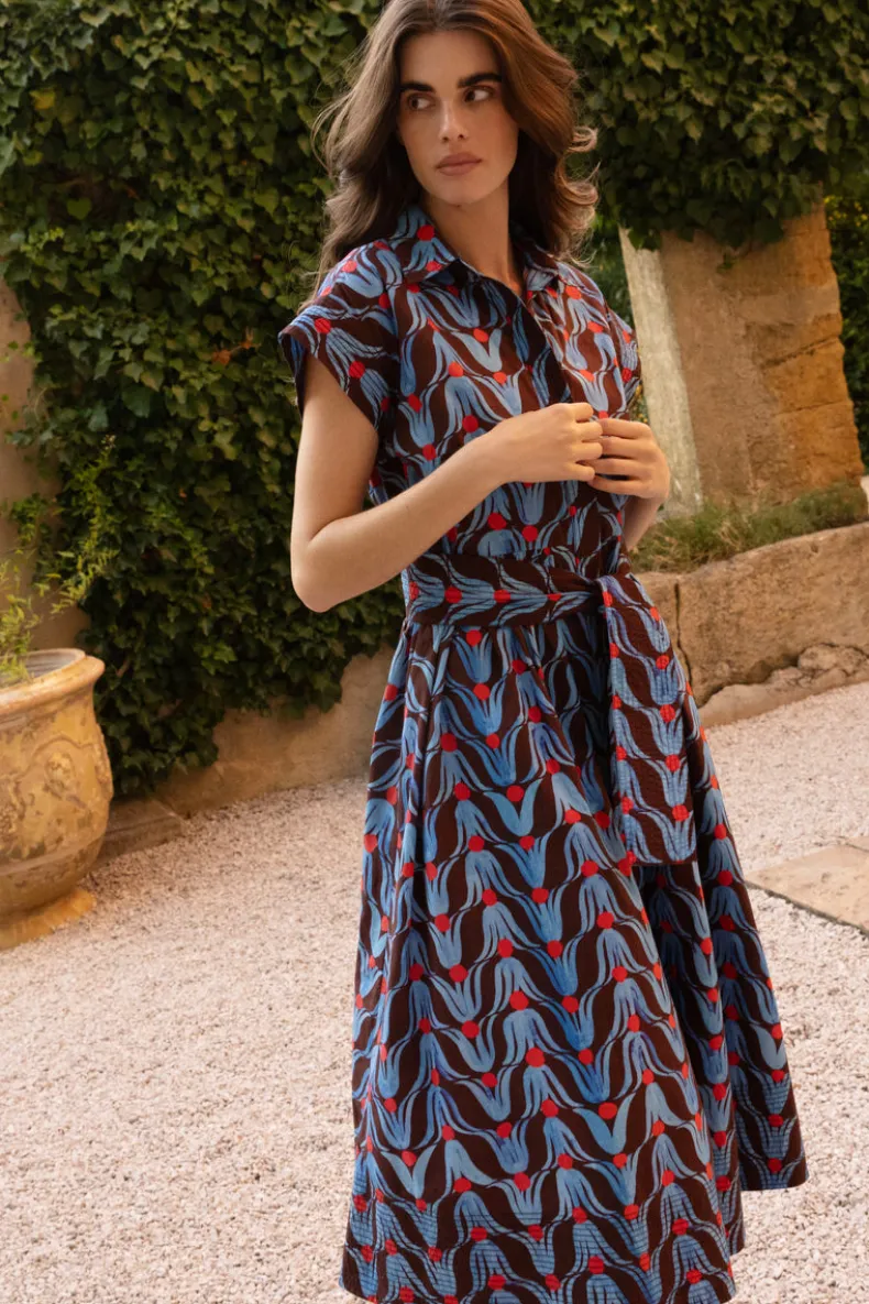 Belted Shirt Dress Midi- Tulip Red