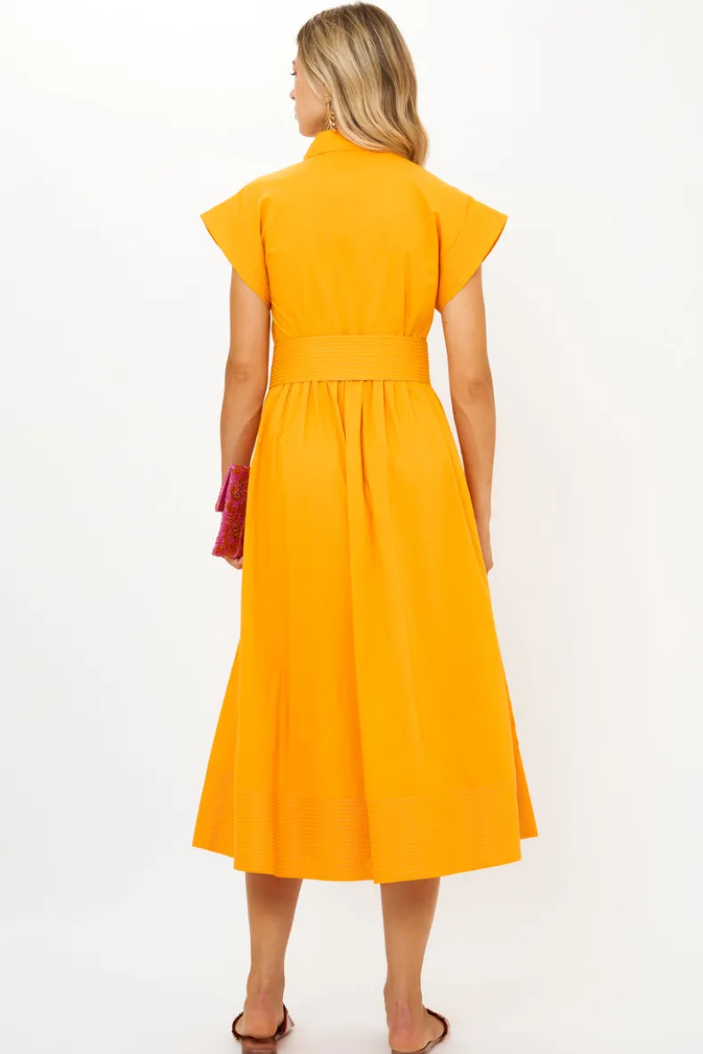 Warmth and brightness are sure to exude off of you in the Tuki Marigold Belted Shirt Dress.A feminine style with golden top stitching accents throughout to give you an extra glow.