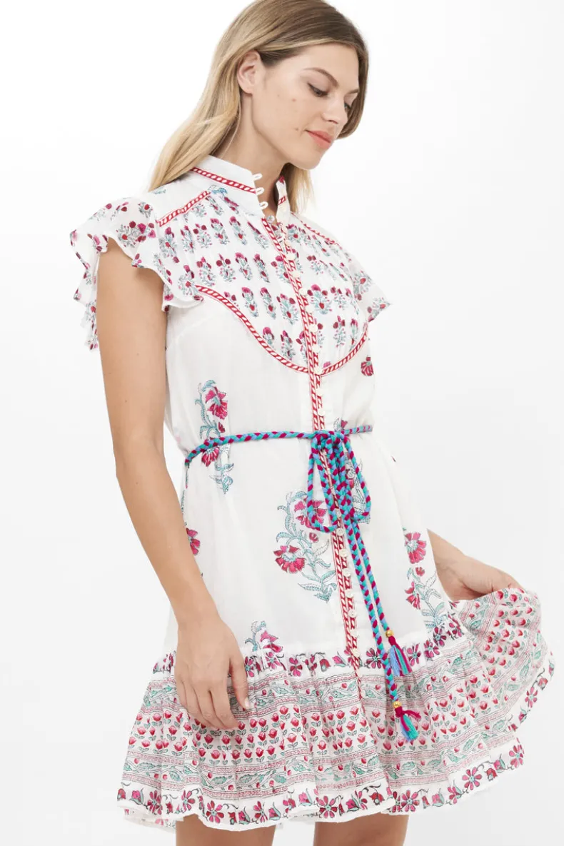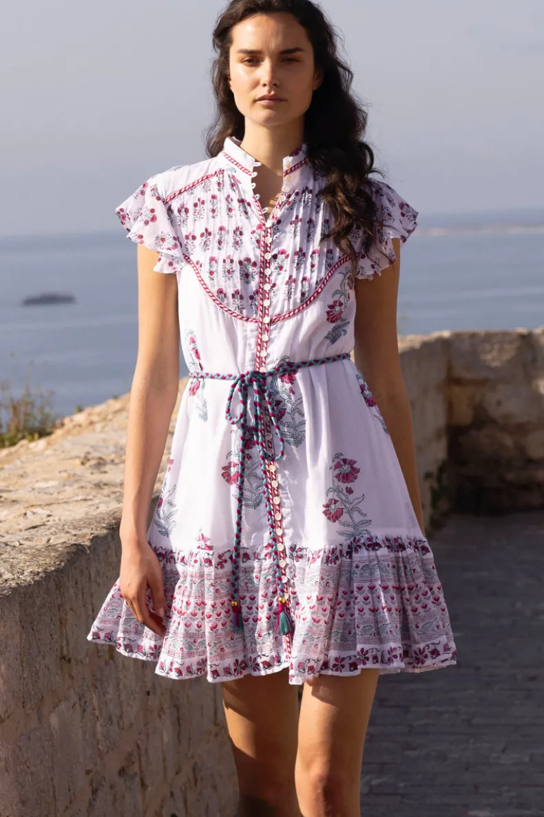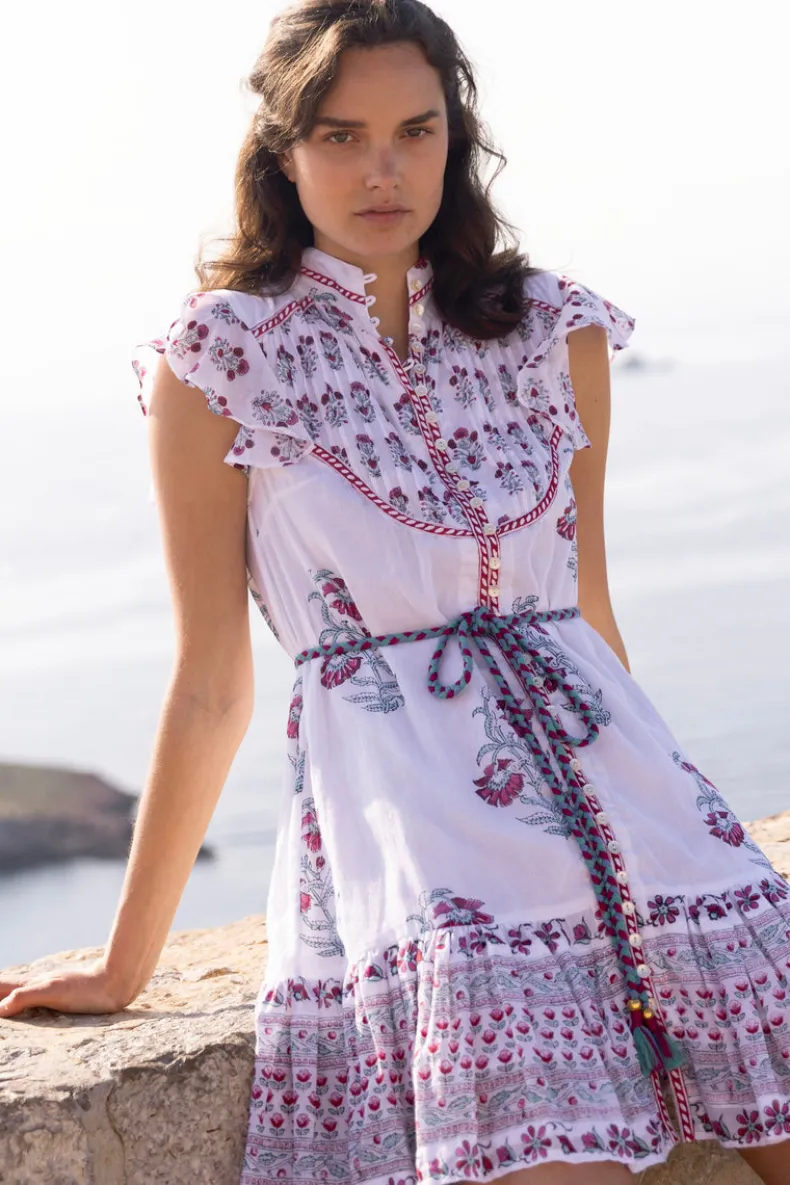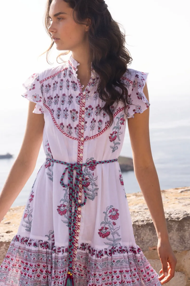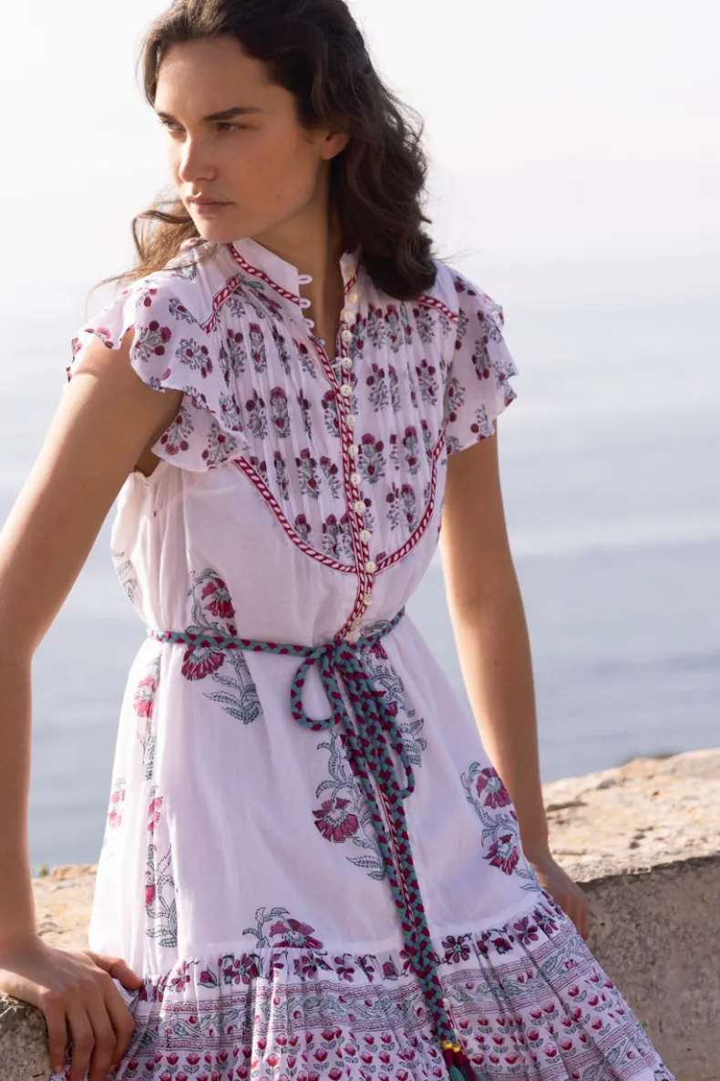 It’s all in the details! Every inch of this dress contains hand embellished touches from the pintuck detailing, to delicate block printed patterns highlighting and complimenting the shape of this delightful dress.